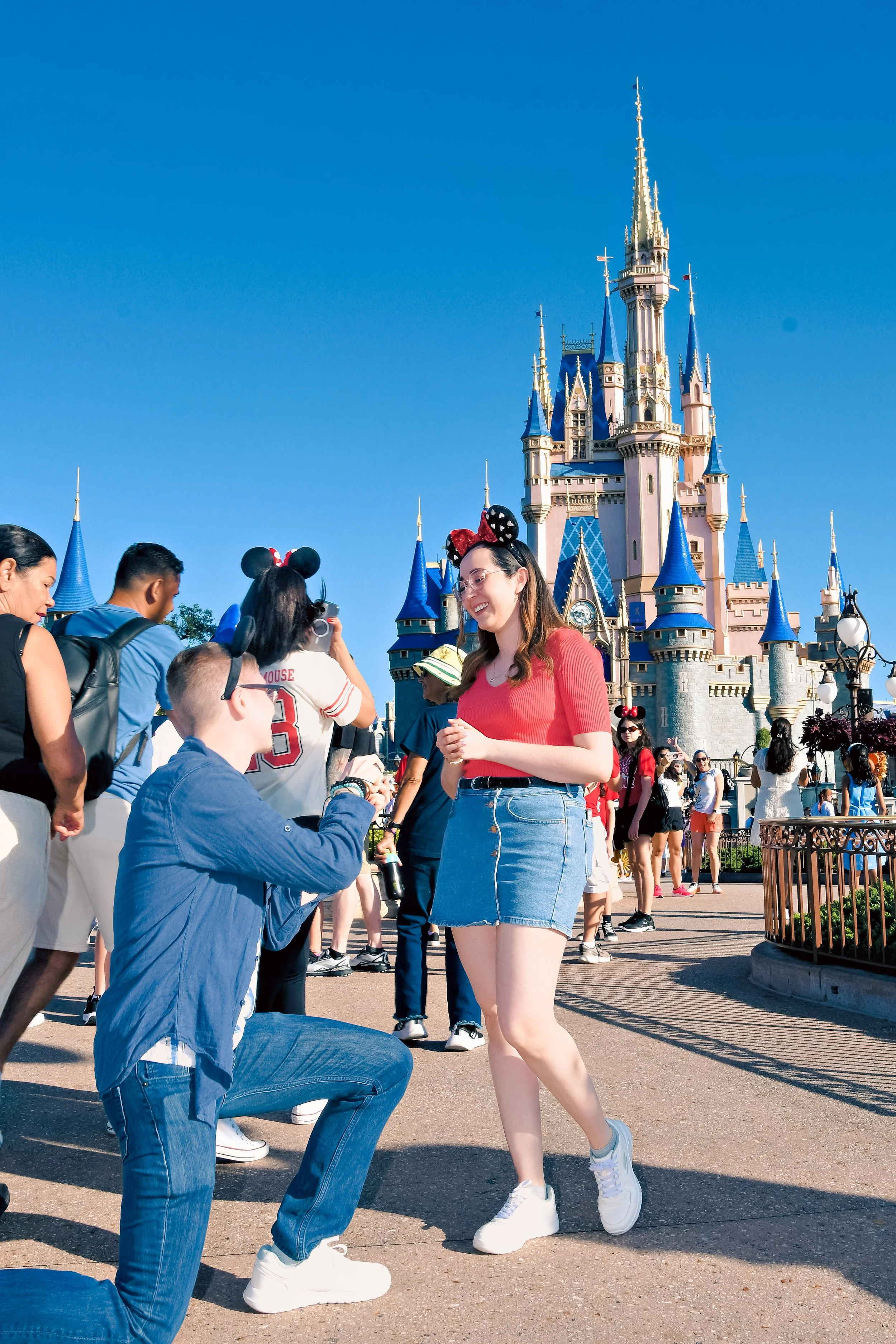 Tras un acomodo de emergencia llegamos a la ciudad. Se movieron algunos planes nuestros pero al final la misión fue exitosa: la mirada de Majo mientras Manuel estaba inclinado ante ella, junto al castillo de Disney, con el anillo en sus manos, nervioso como jamás lo había estado, pero que valió la pena cuando al final ella dijo que sí.